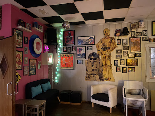 Decoración sorprendente con temática de la Guerra de las Galaxias, entre otros clásicos del cine, como Regreso al Futuro, con una réplica del cuadro de mandos del Delorean con las fechas que aparecen en la primera parte. Tambien homenajes a hitos de la música, como el grupo The Clash, cuyo cantante Joe Strummer era asiduo en la zona de Cabo de Gata (Los Escullos). Una pequeña foto enmarcada de The Kinks, etc. También cuidan los detalles decorativos en los baños, con una frase del Maestro Yoda en boca de Darth Vader en el urinario...