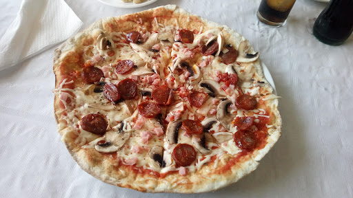Unfortunately we had a very bad experience in this pizzeria. The plates came about 30 minutes apart (unfortunately the chicken was absolutely not worth the wait). Worst of all was the salad starter, which barely had fresh ingredients. So unfresh in fact that I was sick for the rest of the night. The windowed terrace to the side of the street was also incredibly unclean, with dead insects all around the windows.
