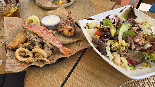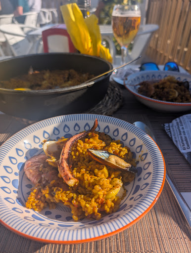 Read moreLovely situation overlooking the square (ISH) and the beach. We had two beers each and probably the best olives we have tasted in Spain in the past 7 weeks. We ordered seafood paella and it was a wait but it was worth every moment as it was divine. We shared it and I wouldn't say it was the biggest bowl between us so we weren't full but we were happily sated so the portion is just about right. We had prawns, octopus, clams, mussels, fish, squid and it came with two rolls. Really lovely restaurant - our meal was €49 and well worth it. Definitely...