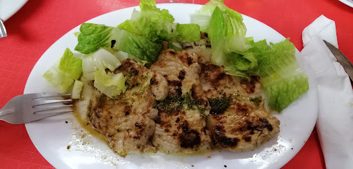 Nefasto, no lo recomendaría a nadie, el precio del menú, no aparece por ningún sitio, supuestamente lo canta al cantar la carta la camarera simpática, pero realmente no lo dice bien o lo dice con la boca pequeña y no se entiende. Pedimos un chuletón que supuestamente entraba en el menú barato o eso es lo poco que habíamos entendido a mí me lo trajo sin hacer, , lo puso en la sartén, le dio la vuelta y listo, le dije que lo hiciera un poco más y la misma operación sartén, vuelta y listo, estaba casi crudo, iba cogiendo lo más hecho, no tenía ni sal, ni me pusieron sal por si acaso, se la pedí a la señorita y de muy mala gana me la trajo, con tan mala gana q al echarla la vi muy fina para ser sal y resultó ser sacarina, se lo dije y le sentó hasta mal, me lo cambio, tardó 30 segundos en traerme otro, si el otro estaba crudo, ese no había por donde cogerlo. Salí hasta con dolor de estómago del asco. Cuando nos trajo la cuenta dice que habíamos cogido el menú más caro y encima nos pregunta que cómo había estado la comida riéndose maliciosamente. No es nada recomendable, ni por la camarera, ni por la cocina, la carne en cualquier sitio te preguntan si al punto, hecha,... Y si ya has hecho que te la rehagan no vuelvas con la carne cruda.Eso si, los clientes habituales se notaban por la complicidad y simpatía que derrochaba...