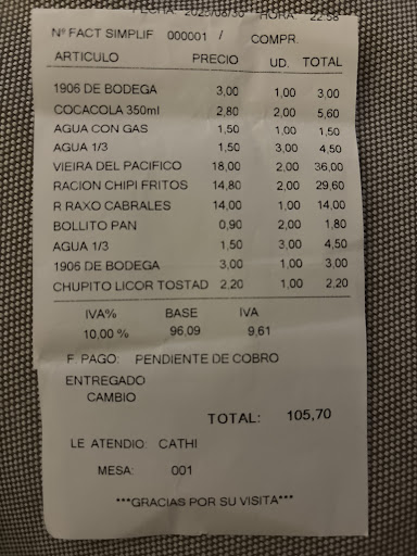 Read moreComida bien, servicio pésimo. Con varias mesas vacías y pocos clientes, te ubican en un rincón donde ellos quieren sin consultar al cliente donde prefiere sentarse. Luego una camarera recoge los pinchos y las botellas de bebidas sin acabar y con contenido dentro, sin preguntar si podía retirar. Para completar un servicio horrible, tras esperar varios minutos, el camarero que trae la comida soltó con fuerza la tabla de carne sobre la mesa y me salpico la camisa en varios sitios con aceite de las patatas y jugo de la carne. Luego traen los cafés con azúcar, cuando se habían pedido todos...