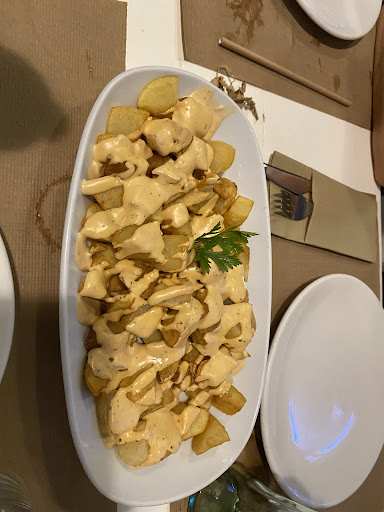 Read moreHemos ido a cenar y la comida estaba muy rica. Pedimos tres raciones de rabo, bravas y calamares. La comida estaba muy rica pero hasta aquí lo bueno que puedo decir. Al traer las primeras reacciones (bravas, calamares y raxo) parecía que todo iba bien. Hasta que le comentamos de allí a 15 minutos que faltaban dos raciones más y nos pide disculpas que ahora salen, 40 minutos después aún sin salir el volvemos a preguntar y nos comenta que pensaba que ya las habían traído. Pues esperamos otros 15 minutos más por ellas. Al final por las dos raciones más de una hora de espera. Pensamos que podría haber sido un error puntual, pero para nuestra sorpresa le pedimos una Coca-Cola y nos la trae en botella sin vaso, le pido un vaso con hielos, se disculpa porque se le ha olvidado y tengo que esperar otros 15 minutos después de decirle varias veces si podía traer el vaso. Sinceramente me parece un caos, no puede ser 15 minutos para un vaso con hielo que debería haber venido ya en el mismo momento que trae la Coca Cola si no la hora de espera para que saliera toda la comida. Podría llegar a entenderlo si en el local hubiera 200 personas pero el aforo no era ni la mitad. Los trabajadores con los que hemos hablado era muy educados pero el servicio es malísimo. Lo precios han subido bastante y para la oferta que hay es algo caro. No pedimos el pulpo al ver el precio con respeto a otros locales de la zona, pero desde luego que una ración de pulpo esté más caro aquí que en Madrid es un tanto asombroso. Al final cada local pone sus precios y atiende a la gente bajo sus condiciones, nosotros optamos por no volver al establecimiento no tanto por la subida de precios, si no por el pésimo...