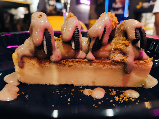 Read moreLa puntuación es máxima porque es sin duda un coqueto, ochentero - por los neones a lo Fame Vice -, personal...local, con muy buen y simpático servicio, con el que es fácil comunicarse ; la propuesta culinaria es original y a la par encierra sabor y un abanico diverso de sugerencias, a cual más sabrosa y que dibujan una sonrisa en tu rostro satisfecho. Lo regamos todo con un Juvé & Camps Milesimé, monovarietal d Xarel-lo diferente y muy expresivo en boca. El título que define, o no, a los platos, entra en la categoría del laberinto creativo gramatical. Promete, pero si quieres recordarlo y asimilarlo a lo que tomas, mejor redacta una nota por el método que prefieras - en esto el móvil es un aliado, aunque mejor utilízalo lo justo y disfruta de la cena -. Comenzamos con . Sin comentarios. Tomamos - con forma de porción de tarta de queso - una variedad de quesos gallegos no dulces, con tomates asados con miel, chorrito de vino de Jerez y anchoas de Santoña. Súper, ¿ no ? ¿ Entonces cómo calificar al , ¡ fácil ! Un Wok vietnamita con un bogavante abierto al medio y en su punto, acompañado de jamón ibérico y verduras y noodles Banh Pho, con un sugerente toque picante. Lo tomamos como último plato, pues me pareció el remate más adecuado, y antes nos regalamos el , a mayor gloria del amante de los sinónimos encarnado en un primerizo estudiante de castellano proveniente del lejano Oriente, que se presentó en forma de tacos chinos de pato estilo Hoi Sin, con vermicelli thai y verduritas cortadas en juliana y presentadas como crudités. El postre consistió, ¡ llegamos !, en un Cotton Cheesecake con galletas Oreo. Consistente. ¡ En fin ! Otra cena más que agradable en tan personal...