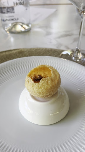 Entiendo que muchas cosas van por gustos, pero el menú que teníamos contratado de Pack Relax incluía un entrante y un principal que en mi caso fue decepcionante. Una mouse de castañas que se me quedó bastante floja y un arroz libanés con un sabor extraño, nada natural ni sorprendente, tampoco bueno. Además el trato por parte del servicio fue caótico, errático y poco conocimiento de lo que nos ofrecían. Nos pusieron además un pan seco, de molde, todo lo que no esperas cuando pagas tanto por un menú y todo lo que se habla de él. Puedo destacar únicamente el buñuelo de cocido, ese estaba muy bueno.