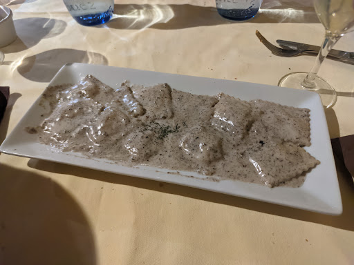 Read moreNos habían hablado del restaurante así que aprovechando que había terminado muy pronto un concierto en un bar cercano, fuimos a probar. Eran las 20.30h y queríamos cenar sobre las 21.30h y antes tomar algo, así que pasamos a ver si podíamos reservar. Primero nos dijo el camarero que parecía encargado o jefe que había dos turnos a las 20.30 y a las 22 o 22.30 no recuerdo bien. Decidimos sentarnos y tomar algo ahí primero para hacer hambre. Éramos 5 personas y nos dejó unos 5 minutos para pensar y mirar la carta (pequeña no es). Le dijimos que volviera en un momento, que no los había dado tiempo y no le encantó dar tiempo para elegir bien. Cuando volvió al poco tiempo, lo hizo metiéndonos prisa para tomarnos nota, diciendo: "a ver, por favor" cuando alguien todavía no lo tenía claro. Así que elegimos bastante coaccionados y sinceramente nos dieron ganas de irnos por el trato de este señor. Pedimos un entrante de Provolone, no sabíamos cuál elegir y nos dijo: " El de 11€ es el normal, que viene con pan", lo que no nos dijo era que nos iba a cobrar 5€ más por una masa de pizza fina para mojar (podéis comprobarlo en el ticket). El resto de camareros más jóvenes fueron más simpáticos e incluso uno nos invitó a dos chupitos. La comida estaba bastante buena, recomiendo los Tagliatelle al porcini (tallarines con salsa de boletus, increíble), y la Pizza Piamontesa (más porcini). El vino tinto, solo tenían rioja y bastante peleón para valer 3,95€ la copa.