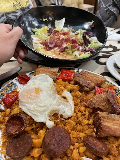 Read moreBueno, llegamos al restaurante y nos reciben invitándonos a entrar al vernos leer la carta, una camarera con una atención de diez. Ya entramos dentro precios correctos para ser una zona donde no veíamos nada más abierto... Los solomillos para mi gusto estaban algo sosos y tenían algo de agua por dentro, mi mujer encantada con las migas, unos torreznos espectaculares, y un chorizo y el pan muy bueno también. Después en el postre el arroz con algo duro...pero la verdad que de sabor muy bueno... No abusan de los precios... En concreto para los olores soy rarito y notaba algún olor a húmedo... No obstante... El lugar estaba lleno y no paraba de llegar gente, un trato muy amable, se preocupan por el cliente. Volvería y tiene pinta que mucha...