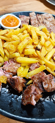 Read moreComida a la brasa, no hay mucho más. El servicio muy simpático. Aunque no muy atento, porque pedimos la ensalada Mixta, nos preguntó 3 veces qué ensalada y cuando nos la trae, nos puso la de la casa (que bueno, nos la comimos y estaba rica). Luego pedimos una fuente de carne de ibéricos (se notaba que no era ibérico), a parte de que venía con chuletón y se "olvidaron" de ponerlo, se lo dijimos y nos lo pusieron más tarde (que no era chuletón, era un filete de ternera gordo, sin más), el pollo a la brasa estaba muy rico y los pinchos (aunque un poco...