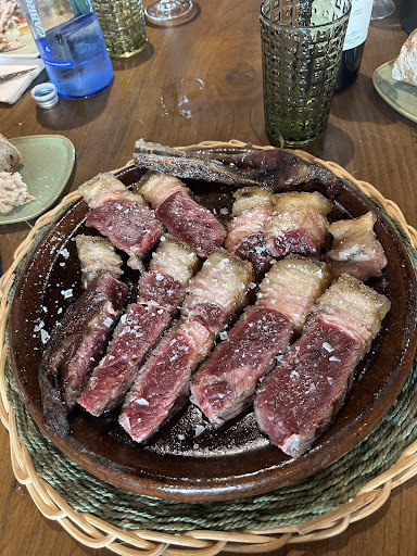 Chuletón madurado de 45 días: Un auténtico espectáculo para los amantes de la carne. La maduración prolongada intensifica el sabor y aporta una ternura excepcional, logrando un equilibrio perfecto entre jugosidad y profundidad de matices. Cada bocado es una explosión de sabor, resultado de una materia prima de primera y una preparación impecable. Bacalao: Preparado con mimo y en su punto justo de cocción, el bacalao destaca por su textura suave y su sabor delicado, realzado por una presentación cuidada. Rape: El rape, fresco y perfectamente cocinado, mantiene su firmeza y sabor, acompañado de una guarnición que potencia su calidad. La preparación demuestra el conocimiento del producto y el respeto por la cocina tradicional gallega, pero con un toque de autor