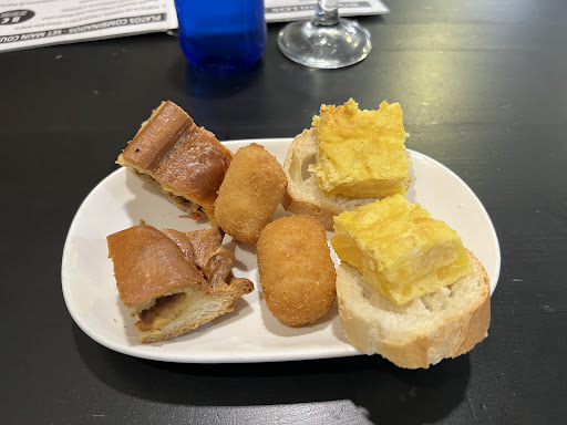 Pedimos una ración de croquetas de quedo cabrales, dos bocatas y por último dos trozos de bizcocho casero (añado fotos).