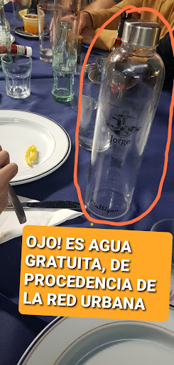 No comparto el ánimo de lucro de este establecimiento para con el agua del grifo, pese a explicarle a el dueño la normativa de que el agua corriente para los clientes es gratis, esté o no envasada... él indica que el agua está filtrada y envasada y por esto cuesta 3€ cada botella, porque un servicio. Le digo que conocemos la iniciativa de filtrado que utiliza y es un buen detalle por un coste muy asequible, que deja en muy buen lugar el servicio de agua potable gratuita por parte de los bares adscritos a este proyecto, proyecto el cual conozco muy bien debido a mi trabajo. Dice que "nos la regala pero que "calle anda calla"