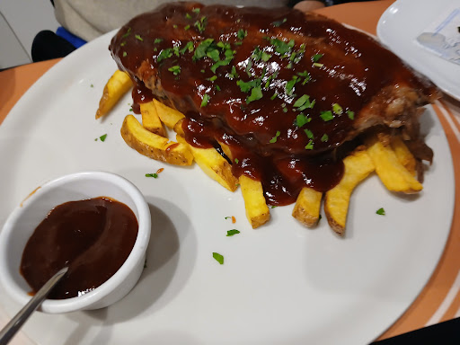 We were a party of four. The food, service and atmosphere were fantastic. Our waitress Vicki was very attentive and friendly. We had prawn pil pil, goat's cheese croquettes, and 2 of us had potato skins for starters. For mains we had, ribs, pasta aribiata (with cheesy garlic bread), and 2 of us had the Moroccan chicken. The portions were really generous. The food was nicely presented and piping hot. We really enjoyed our meal then had a little break before ordering dessert. We also ordered a jug of sangria. Tony had come to our table to check everything was OK with our meal and was saying his sangria was definitely worth trying. He was correct, it was the best sangria we have had. The fruit had been soaked in alcohol before being added to the jug. For dessert I had warm chocolate fudge cake with ice cream. My husband had apple pie and custard, and our friend had cherry pie and custard (pictured). Tony and Vicki were very attentive and friendly all evening. We will definitely be eating here again and would recommend Bakers for a relaxing dinner...