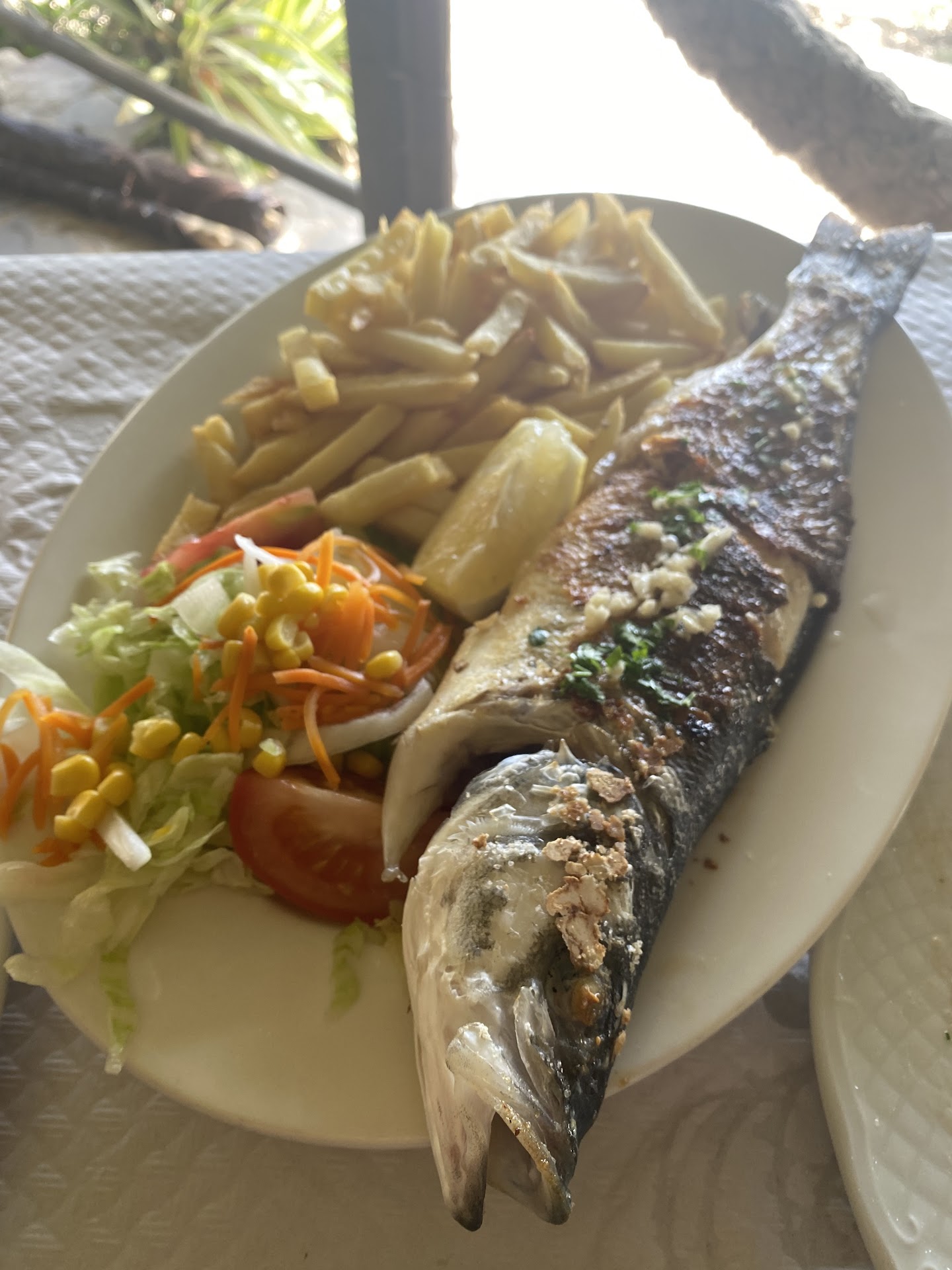 🍽️ Un festín de pescado fresco y sabores mediterráneos: ✅ Chipirones a la plancha 🦑, tiernos y con ese toque de brasas que los hace irresistibles. ✅ Ensalada de tomate y aguacate 🥑🍅, fresca, sabrosa y perfecta para acompañar los platos más intensos. ✅ Fritura de pescado 🍤🐠, variada y crujiente, perfecta para compartir con una cerveza bien fría 🍺.