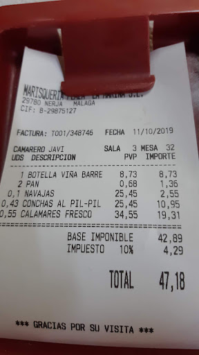 First of all about pluses. The food is really fresh and tasty. I still recommend this place if You will be carefull while ordering and paying the bill. Now about minuses. Different products are served by weight. We ordered 100 grams of razor clams, 100 grams of clams pil pil and fresh calamari by weight. Everything was delicious and after dinner we asked for the bill. After the bill was presented I wondered, that instead of ordered 100 grams of clams pil pil they charged me for 430 grams! I told the waiter, that I have ordered just 100 grams and this was exactly what was on the plate! He pretended he does not speak English. Fine. I showed him the picture, where is clearly seen that these 14 clams can not anyhow be 430 grams (even in raw weight!) which is compared to huge calamari which is around 500 grams. It just can not be and finally I did not ordered more, than 100 grams anyway! He just wrote on the paper tablecloth, that I need to pay for 430 grams and that's it! No excuse, no attempt to communicate! So, In total I was charged 8.35€ more. I did not want to argue, but now I aware everybody, that you probably need to write your order on paper and make the picture of it before ordering. Otherwise you can face similar situation. All pictures attached. If management would like to compensate me my 8.40€ I would...