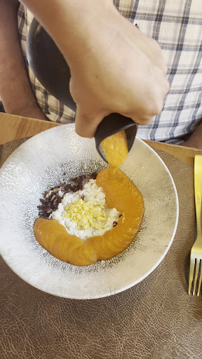 From arrival to departure, this is truly a special place. We had a reservation, we were greeted very politely and seated to a table of our choice. Beautiful simple table setting using very calming surrounding colours. The light fittings were works of art. Back to the food. Menus were on clipboards, and the wine list was a QRCode. Staff were neatly presented with white shirts and olive green pants and aprons. All were wearing black shoes. We were offered an amuse bouche which was very nice. It was a prawn cracker with a pepper mousse. Very flavourful. We declined the bread of which there were many types. We ordered a Gzapacho, chicken croquettes, cod croquettes, and crackling. It was divine. We also had 2 glasses of really nice Rosado, and 3 bottles of water. We also were given two chocolate truffles to end our meal. The staff were very attentive and it was a most enjoyable experience. We will be back. Thank you.