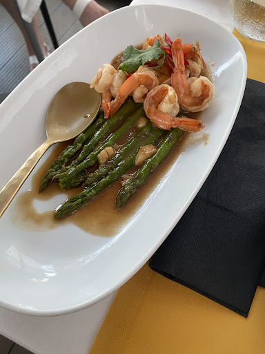 Dined here with my wife and our baby girl. A table was found for us with enough room for our buggy to be beside us. We were quickly given the menu and we were offered drinks. Waiting staff were prompt and friendly from the beginning. We shared a starter of minced chicken Laos style, I can't remember the exact name. It was delicious. Before it arrived we were also given a appetiser of prawn in tempura batter with a sweet chilli sauce. It was cooked perfectly. When our baby started to complain just as the mains arrived, the waitress brought her on a walk around the restaurant and she came back to us about ten minutes later laughing and happy again! Our mains were delicious. My wife had red curry and I had chicken cooked with spring onion and lemon grass. I requested extra chillis in it when ordering and they were included with no problem so it was nice and spicy then. The ingredients were obviously fresh and all so flavoursome. It reminded us of our times in Thailand and Laos. Bottle of wine and our meals came to less than €50. We left very happy and would highly...