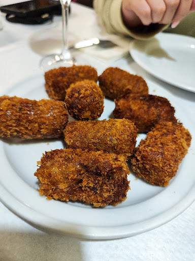 Fuimos porque nos habían hablado bien del sitio, pero bastante decepcionante. Las croquetas llegan frías por dentro (es normal que las congeles, pero qué menos que asegurarte que quedan bien cocinadas), y las zamburiñas insípidas y muy saladas. La tortilla con chorizo arregló un poco la cena, muy buena. Veinte euros por cabeza por una cena que no vale la pena, me sorprende que el local esté siempre lleno, obligatorio reservar con antelación