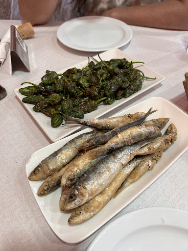 Additionally, I had to wait quite a long time for the fish—around 30 to 40 minutes. I expected it to be butterflied and cooked "a la plancha," but it was served whole with the skin noticeably burnt. On the upside, it wasn’t oily, which defied my expectations. The accompanying salad was very fresh and enjoyable. My partner’s salad was also quite good, although the portion size was clearly meant for two people rather than one, which we didn’t particularly appreciate.
