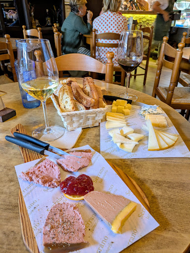 My wife and I had wonderful time here. We are walking the Camino, and researched where to eat on our only night in Praia Amera. We toured a few restaurants, after walking into town and this place looked worth a try. So pleased we did. We walked in at 7.45 and had the pick of inside or outside. Our Spanish isn't great but we managed to communicate enough to get some fantastic food and wine. TIP: get here early as it was a Tuesday night and we could see a queue forming from 8.30ish. It was very popular with the locals, always a great sign. We ordered their most popular dishes according to our waiter. The hot meat and cheese sandwich and the meatballs, we also added both a pate and mixed cheese boards, with bread. All deliciously washed down with their house wine. So good we ended up having 3 glasses each. Try this place I'm confident you won't regret it. The bill came to just over 50€ which thought...