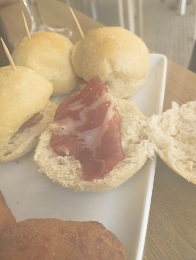 Pedimos unas cervezas y algo para picar. Lo que llegó fue un poema a la desgana: unas croquetas que claramente habían pasado directamente del congelador a la freidora, con ese interior helado que te hace cuestionarte tus decisiones de vida, y unos “bocatitos” de lomo en los que había tanta cantidad de pan que el lomo parecía un rumor en el horizonte.