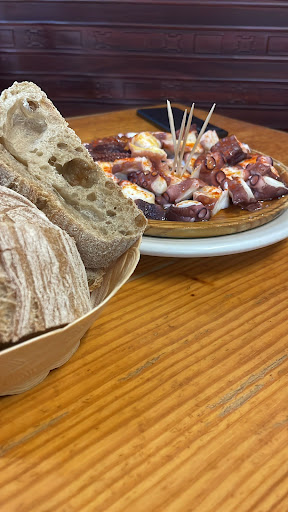 Read moreEs una tasca con solera, de toda la vida. Muy frecuentada, sobre todo por gente local. Si vas buscando algo elegante y sofisticado es mejor que des media vuelta y te vayas por donde has venido. Si te gusta lo tradicional, ambientes de andar por casa, disfrutas de los vinos del país, unas buenas raciones de pulpo, calamares, raxo... disfrutarás del Moreno y la atención de Pepe. Siempre al pie del cañón, un currante. Gran aparcamiento que facilita una rápida "carga y descarga". Distintas zonas: terraza exterior, barra con mesas y comedores interiores y exteriores. Precios muy...