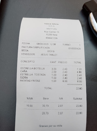 Es la 2a. vez en un mes q tapeo en este local. Todo iba bien hasta pedir EMPANADA DE "ZAMBURIÑAS". Fue alucinante comprobar que pusieron en el sitio de las zamburiñas que iban camufladas en un color anaranjado. Sr. Que era lo q sustituyeron a las zamburiñas? Mal asunto. Pagué 59 € x todo. No rellené hoja de reclamaciones. No levanté la voz xq la terraza estaba llena de gente comiendo, incluso algunos , dicha empanada. Se armaría una buena. Pagué. Le dije a ud, el dueño, q NO ENGAÑE A LA GENTE dando lo q daba en lugar de Zamburiñas (que lo normal sería fuera volandeira) pero era cebolla y algo con color naranja q me atrevo a decir era pechuga de pollo tintata color naranja y alguna hueva a saber se que peixe. Por favor, cambie la carta y elimine la EMPANADA DE ZAMBURIÑAS q ni es zamburiñas ni es nada q se le parezca. A nosotros nos engañó sin necesidad de meter lo q fuera tintada color naranja. Tengo comprado saquitos de 5 kg de ZAMBURUÑAS y el listo de turno jugando peligrosamente con los clientes dando componentes de la empanada falsos. La gente q da "me gusta" a la empanada pienso NUNCA COMIÓ ZAMBURIÑAS/VOLANDEIRAS. Estamos en el 2025 y si lleva años haciendo eso... alguien habrá q le reclame si no se le van sin pagar. Coaa q no le deseo le suceda. Pero es muy triste q se atreviera a dar "gato x liebre". Las fotos me las reservo. Saludos Sr. Y no siga si. Muchas gracias x leer esto y x eliminar de la carta dicha EMPANADA...