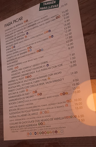 La comida buenísima y todo casero y original, la chica que nos atendió super profesional,simpática y amable. Comimos guacamole que venía con topos y parecía casero, ami me gusta con un poco más de sal y lima pero estaba rica pedimos también emsalada de bureats, viene en una cesta comestible hecha de tortilla de tacos frita, todo muy muy bueno, un perrito que venía con ketchup de mango y algo más que no recuerdo, una señora salchicha, mi pareja pidió hb7rgursa y dijo que estaba buena aunque le pareció pocos ingredientes pero lo dicho, le gustó y yo pedí una "deliciosidaf' phad Thai con cacahuetes y no se qué más ,no sé si en la carta se llama exactamente así algo de phad con cacahuetes y verdura, son como noodles de arroz con verduras 6 cacahuetes con salsa creo recordar de cacahuete, tiene un ligerísimo toque picante y me requetechiflo! La verdad es que cuando vuelva lo pediré de nuevo, de postre solo hay coulant pero está muy bueno, a mí hijo no le gusta demasiado el chocolate y probó el de mi hija y pidió otro, todo eso + dos aguas grandes + un café con leche 83€, raciones bien grandes en...