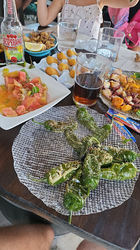 Me sorprende que ninguna reseña se refiera a la suciedad imperante en este lugar, al que íbamos por primera vez, porque fue lo primero que me llamó la atención. Cuando llegamos para tomar algo a las 17 buscamos una mesa en la terraza. Las había, sí, pero todas con platos y vasos con pinta de llevar ahí un buen rato o, las que no tenían nada encima, estaban sucias y pringosas. El suelo con servilletas y botellas de agua vacías. Nadie a la vista recogiendo y limpiando, y eso que tampoco había jaleo a esas horas. Pedimos un mojito (los tienen ya medio preparados en vasos que tienen apilados en la barra... ¿hola?) y una piña colada sin alcohol (8 y 10 euros respectivamente, y nada del otro mundo). Pagas en la barra de fuera y recoges las consumiciones dentro, dónde hay que esperar a que te las preparen, con un calor sofocante. Dejo lo mejor para lo último que son los baños. ¡Qué repugnancia, por Dios! El olor penetrante a pis que se percibe ya desde fuera te quita las ganas de entrar y, si lo haces, intentas no respirar. El estado del suelo y de la baza haciendo honor al aroma y, la escobilla, que debió perder su color blanco original hace años (no hay que tener mucha imaginación para deducir cuál es el actual) termina de redondear el aspecto de tugurio infecto de este lugar. Y entre ello y el calor que hace dentro -ni me imagino en las cocinas- como para arriesgarte a comer siquiera una patata frita. Así que si lo que buscas es un chiringuito guarro (eso sí, ubicado justo al lado de la playa), no eres escrupuloso y tu sistema inmune está en buenas condiciones no lo dudes, este...