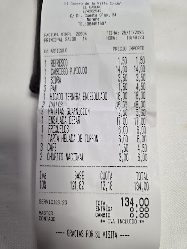 Read moreLa atención por parte de Maite , muy buena , al igual que por teléfono y en el local . La carta muy reducida , con muy pocas para poder degustar [ el local un poco desangelado , necesita aunque sea la tele encendida ] . De primero pastel de centollo [ venía recién sacado de la nevera , estaba frío , cuando cojio temperatura , estaba con buen sabor ] . La sidra estaba muy rica , con sabor afrutado . Calamares de segundo [ decían que eran frescos , aunque tenían un sabor un poco diferente y la ración para el precio que tenía era caro ] . De postre tarta de turrón , fría [ en si era lo único que estaba rico ] . El pan , normal . Relación calidad precio, bastante caro . Pero lo mejor...