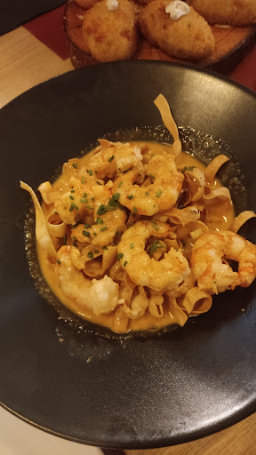 Read moreFuimos a comer un Sábado. Pedimos croquetas de queso de Mahón, de boletus y queso de cabra, estaban ricas y sabrosas. La carne del cachopo estaba tierna, no era muy grande pero estaba correcto. Las bravas llevaban muy poca salsa, se notaba que se hicieron a fuego fuerte porque muchas se quedaron duras, un poco crudas y no picaban nada. Los noodles con langostinos y leche de coco muy ricos, con un toque picante muy agradable. No tiene gran carta de vinos, es reducida pero pedimos un Rioja que estaba bien. Lo que no nos gustó fue el servicio nada atento. Había poca gente, apenas dos mesas y tuvimos que llamar al camarero y levantarnos en una ocasión para pedir cuando necesitamos un salsa o algún extra. Calidad/precio buena. Salimos a 20€ por persona...