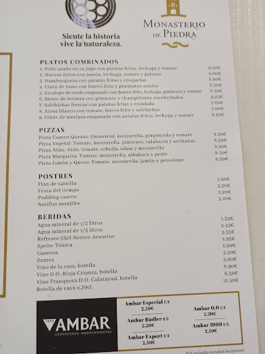 Read moreLa estrella se la doy por el personal que es muy atento y servicial. Respecto a la comida nos sentimos estafados. Resulta carísimo comer ya que la calidad-cantidad-precio es abusivo. Está claro que en la carta pone hamburguesa con patatas y croquetas, y se lo toman al pie de la letra: te sirven la hamburguesa sin pan ni lechuga ni tomate o un poco de queso, ahí está en el plato, más triste y solitaria que la casa de la pradera a la hora de la misa. Nos pedimos dos y en un plato vinieron 3 croquetas y en otro 2. También nos pedimos 2 menús de los cuales uno vino sin pan (entra en el menú y lo tuvimos que pedir), y el otro sin agua (más de lo mismo). La calidad de la comida casi de comedor de colegio. Lo de los bocadillos fríos también tiene guasa: por 3 o 4 euros tienes un minibocadillo de jamón (una loncha y hasta más ver), chorizo (de embutido, 2 rodajas), queso (unos finos cortes que puedes ver al camarero a través de ellos) y tortilla (no lo pedimos pero supongo que estará hecha sin huevo ;-)). Conclusión: llevaros la comida hecha o visitar el Monasterio y su entorno a horas que no os pille la hora de comer, porque el "restaurante" es lo único...