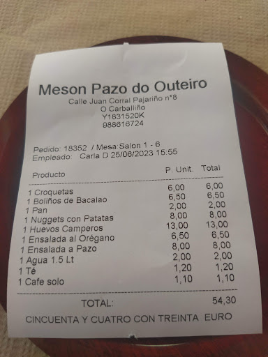 Read moreMala cena en este local de O Carballiño, al que nos recomendaron ir, pero que no volveremos. Raciones pequeñas, y de baja calidad. Nos vendieron por un entrecot, un filete malo cobrando por lo mismo, postre muy pobre y atencion bastante mala, tienendo que esperar hasta dos horas para cenar. Hay mejores opciones en la localidad para no ir...