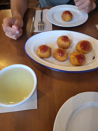 Read moreRegadas fue nuestro gran descubrimiento en O Carballiño. Es un local de pequeñas dimensiones, por lo que, antes de nada, usted debe reservar con antelación. Es uno de los restaurantes de moda en la zona, no sólo por la calidad de sus platos, si no que también, como comprobamos, por el excelente trato y la honestidad de su servicio. Su carta incluye platos sencillos, pero magníficos y a buenos precios. A destacar, sus huevos rotos. También probamos sus chipirones a la cazuela. De postre, me decanté por queso con membrillo. Por cierto, el vino se sirve en jarra y se consume con los tradicionales pocillos, todo un plus. Lástima vivir lejos, es un rincón...