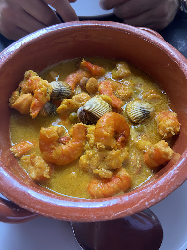 Read moreReservamos el día anterior para comer al día siguiente, queríamos les fabes con centollo, cuando llegamos al local nos dijeron que no tenían, lo cual nos aconsejaron la cazuela de rape langostinos berberecho…. Sugerencia de la casa, su sabor a Curri mato el sabor de la cazuela , dado que es un lugar costero típico de mar, los mejillones vinagreta ni fu ni fa, mejillones que debían llevar varios días en esa vinagreta ya que la textura era seca a causa del vinagre, los percebes yo nunca los había probado, pero por experiencia de mi acompañante, pequeños, buen sabor, sin más, ahora la cazuela para 22€ muy pequeña y lo del curry lo peor, los langostinos secos muy cocidos y duros, dejo fotos de todo lo que comimos pero para estar en O Grove deja mucho que desear, dado que hay mejores ofertas gastronómicas donde poder degustar del sabor del mar, dado que es lo que se buscas cuando vas a las...