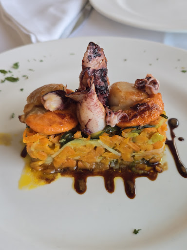 Read moreDe primeras parece que prometía el restaurante.Pero la sorpresa nos la llevamos y con mucha decepcion. Primero preguntamos por la vieira y por la elaboración al camarero y por explicación qué nos dió nos pareció correcto y la pedimos, segundo las gambas a la plancha, correcto. Y luego pedimos unos solomillos de ternera gallega de la zona de Lugo. Los pedimos uno poco hecho y el otro al punto. Hasta hay todo perfecto a la hora de servir sorpresa la vieira con una salsa de tomate elaborada con pan rallado y gratinado.De lo que nos explicó el camarero todo lo contrario. Las gambas de plancha nada hechas en una sartén y tiradas en un plato sin más. Los solomillos uno zapatilla, zapatilla y el otro al punto un poco más. Terminamos y nos recogen los platos y le pedimos el postre y el chico se quedó todo pillado y nos dice vale ahora viene el compañero y os pide el postre. Pasan 10 minutos nos viene el camarero qué nos cogió la comanda y nos dice si queríamos algo más y le decimos que si el postre, contestación del crack pues se lo teníamos qué haber pedido al compañero todo esto con malas maneras. Pedimos el potre y para casa. No vuelvo más. Una y no...