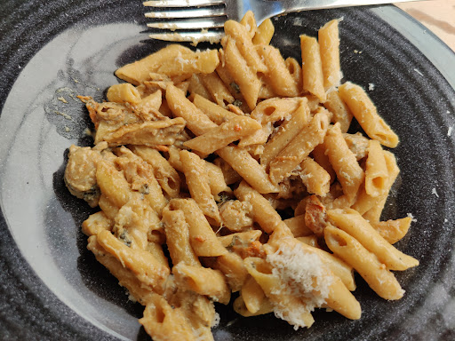 The food in the restaurant was relatively good and I liked it, but the service is really unacceptable. The waiter came to our table and asked for the Instagram of one of our friends who is 19 years old. We had already been getting strange looks from the cook, but then for him to also ask for Instagram is not okay. We wanted to pay and leave as quickly as possible, but the waiter noticeably ignored us. We called him several times, tried making eye contact, and even told him directly that we wanted to pay, but we were ignored every single time. He kept going to other tables or outside even though it was very obvious that we wanted to pay. It took about 20 minutes until we were able to pay, and we even had to get up and go to the counter so that we would be taken seriously. Such behavior is really very unprofessional and ruined the whole evening a bit. Especially considering that most of us were 15 and the cook was at least 30. That is absolutely not okay, and that is why I only give the service 1 star. The food is good but nothing particularly special. I would rather not recommend the restaurant.