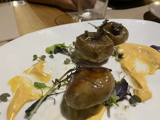 La atención brindada por el personal ha sido buena. Los camareros son amables. Durante mi visita, tuve el placer de probar la parrillada de verduras, que presentaba una selección vibrante y fresca de verduras de temporada acompañadas de queso García Ulloa. Los champiñones a la brasa con vinagreta de frutas fueron una sorpresa deliciosa, con la combinación de manzana, piña y arándanos aportando un toque refrescante a la parrilla.