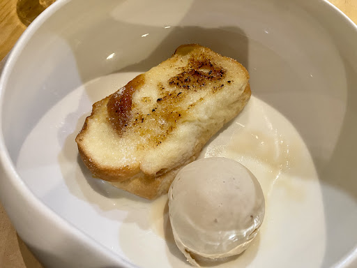 Read moreInformación para navegantes gastronómicos. Partimos de que es una propuesta de cocina creativa. Es decir, una pretensión culinaria para disfrute de los sentidos. Pues este es resultado: En el apartado subjetivo, (para gustos, colores) de 4 platos (verduras, tacos, mexilons y espetada de carne) sólo nos gustó la fritura de verduras. En el resto, el ingrediente principal que da nombre al plato resulta imposible de reconocer de modo que tanto daría si comes un mexilón o un bígaro, carne de cerdo o de ternera, gambón o camarón. El postre (torrosca con helado) es sabroso, pero no sólo de postres se hace un restaurante. En el apartado objetivo, los platos se sirven sin cubiertos para repartir la comida entre los comensales, no cambian la vajilla entre plato y plato, el nivel de ruido del local es alto y similar a cualquier bar ordinario y el servicio al verse desbordado por un aforo a todas luces excesivo para el plantel existente se resiente en el trato debido a la clientela con prisas y modos impropios de un establecimiento de calidad superior a la media. En definitiva, un quiero y no puedo que debe corregirse para mejorar la experiencia de los usuarios. Pero, no somos optimistas porque cuando la camarera preguntó ¿qué tal todo?, y le dijimos que nos pareció que hubo "luces y sombras" ni siquiera se interesó por la razón de nuestra opinión. Lástima, pero afortunadamente O Grove tiene más...