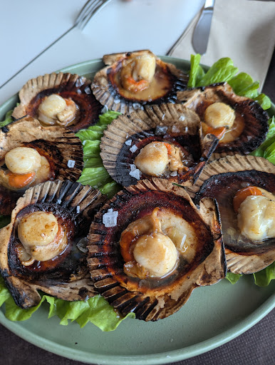 Read moreTapería de magnífica ubicación en O Grove, pues dispone de unas buenas vistas a la ría que disfrutas mientras comes. Habíamos reservado un domingo para un grupo de 11 personas, dos de las cuáles éramos celíacas. No nos adaptaron la carta por tema intolerancias, tuvimos que escoger aquellos platos que sabíamos que no contenían gluten. Indicar que tampoco tenían pan sin gluten. Se pidieron varios entrantes para compartir: pulpo, zamburiñas, tortilla y croquetas. Todo bastante rico aunque tardaron bastante en servirnos. Luego cada uno pedimos un principal. La mayoría optamos por croca aunque también se pidió cordero y jamón asado. La croca no estaba demasiado buena porque era muy dura y se hacía complicado masticarla. Sin embargo, los que pidieron el cordero se quedaron encantados con el sabor. Para finalizar escogimos varios postres: filloas rellenas y tarta de la abuela. Las celiacas optamos por una alternativa que nos ofrecieron estilo tarta de queso, aunque por error se les coló un barquillo y helado que si tenían gluten…por lo que tuvieron que revisarlo y finalmente nos trajeron sólo el trozo de tarta de queso. La comida normal aunque buena ración. Quizás lo peor haya sido el descuido con el tema gluten, que puede...