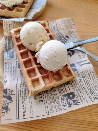 Pedimos sugerencia a la chica que nos atendió y, muy amablemente, nos recomendó sabores de helado que fueron todo un acierto. Al llegar, le dijimos al chico que teníamos hueco para algo rico y nos soltó: "helado". Pero al ver los gofres le dijimos: "¡gofres y helado!" y se rió con nosotros.