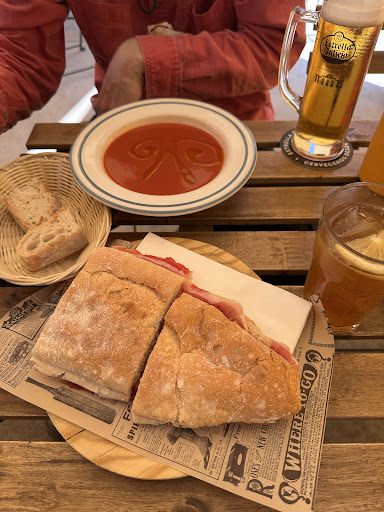 The burger was sublime, served together with homestyle fries. The pesto pasta was even better and quite light for us to keep on our camino. Lastly we recommend the white bean soup, which had tasty flavors, and paired gracefully with the tomato flavor. The beer was chilled to perfection.