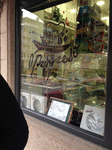 Excellent O Porriño artisan bakery with great selection of tasty, freshly made breads, pastries, baguettes & pastries. Nice air conditioned dinning area with full selection of drinks. They serve free pinchos with each drink usually a slice of Galician pie and choripan which was especially delicious (baked bread with mini chorizo inside). Friendly waitresses so good service. Popular with locals. Nice toilets &...