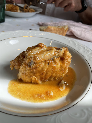 1a visita Disfrutamos de una estupenda comida. Decidimos pedir el menú palio que consistió en aperitivo de empanada de pisto, de primero flores con pisto (muy ricas), de plato principal merluza rellena (buenísima), carrillera (tiernas y sabrosas), de postre hojaldre con nata (muy rica). Además compartimos unas migas y unos callos, ambos platos súper ricos. Especial mención al pan de aceite y al trato que nos ofrecieron. Todo ello por algo menos de 40€ por cabeza con café.