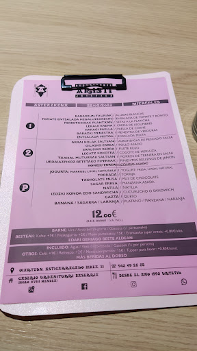 Read moreTerraza agradable,servicio amable y rapido,el menĂș para mi gusto escaso ya que segĂșn se van agotando platos no añaden nuevos.Las croquetas muy muy buenas ,en mi opiniĂłn la ensaladilla parece de bote( patata ,zanahoria) ,la txuleta en mi opiniĂłn no es de calidad o quizĂĄs la dejan al aire y coge un sabor un poco desagradable,las patatas congeladas y en un sitio tan casero no me lo esperaba,los postres sencillos pero caseros.Me esperaba mucho mĂĄs despuĂ©s de leer las opiniones y aunque es un menĂș de 11 euros te esperas comer buena comida casera.Recalco que el...