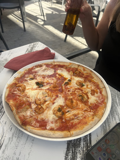 This place is a must. The lady who serves, she cannot talk any English but tries so hard, and apologises that she can’t talk very well! There is no need to apologise! Very hard worker and such good service. The pizza is fantastic and they even do gluten-free pizza for one € 1.50 more. It’s quite likely that the reason it’s so good is that the chef is Italian. He came out to serve tables! It’s very reasonably priced and has a really thin base at the pizza just like the pizzas in Naples. We had pill pill And the mushroom and bacon. With garlic bread. Hermso!!