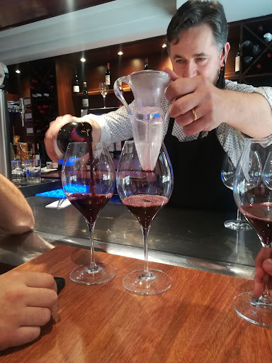 En paralelo con este desfile de sorpresas gastronómicas, el dueño nos hizo una cata de un vino Rioja tras las diferentes modalidades de decantarlo, airearlo, romperlo y conseguir que sea más equilibrado en boca.