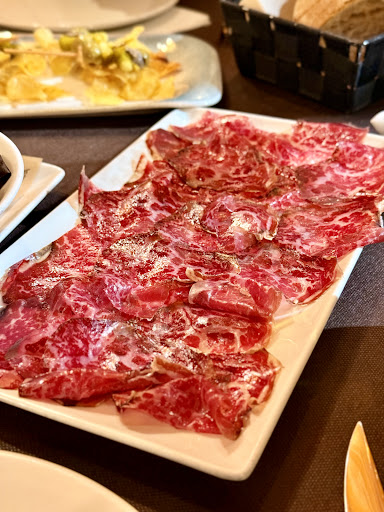 Fuimos cuatro a cenar y pedimos un poco de todo. He de decir que los mejores platos fueron la cecina, la chistorra, que estaba muy rica, y los postres, que estaban espectaculares 😋. La carne también estaba muy buena y se nota que el producto que manejan es de calidad.