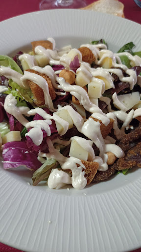 Read moreMenĂș de 18⏠con 4 opciones bastante cutre. No hay opciĂłn a elegir otra cosa de la carta. El menĂș todo recalentado o ni eso. De primero te ofrecen un risotto con gambas y traen un risotto con setas y 4 "gambitas" congeladas muy pequeñas en cada plato. Pero los segundos han sido aĂșn peor... Las albĂłndigas de atĂșn estaban frĂas, el rabo de toro es una pasta que estĂĄ completamente quemada y que dista mucho de ser algo comestible (ver foto) Y en los segundos no habĂa ni un plato de carne como opciĂłn... Los postres estaban buenos, lo Ășnico. Ah, y el baño sin tapa en el vater... Un sitio a evitar por lo menos los dĂas de fiesta (y entre semana...