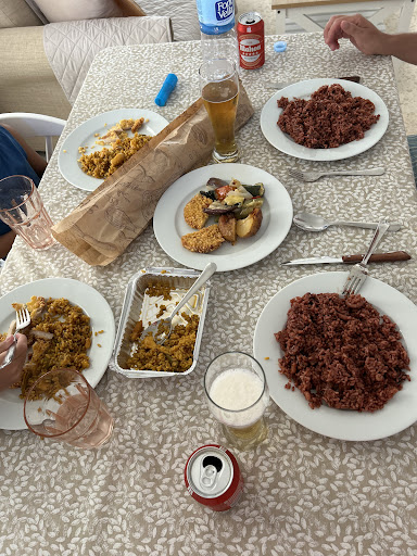 Read moreEs el lugar que da vida al centro comercial de Oliva Nova, su horario es intensivo de 8 a 24 horas,siete dias a la semana, lo que hace que sea un lugar imprescindible para cualquier compra gastronómica en cualquier momento. , pan, bollos, pastelería, fruta, fiambres, leche, bebidas etc, un colmado/ restaurante gourmet . Su cocina es variada , de calidad y muy bien elaborada. Vicent y Aurora, son el alma y corazón de este negocio , siempre atentos y en constante innovación. Destacan sus paellas, fideuás, hamburguesas, pollo asado y pitzas... deliciosas. Muy recomendable y su relación calidad precio ...