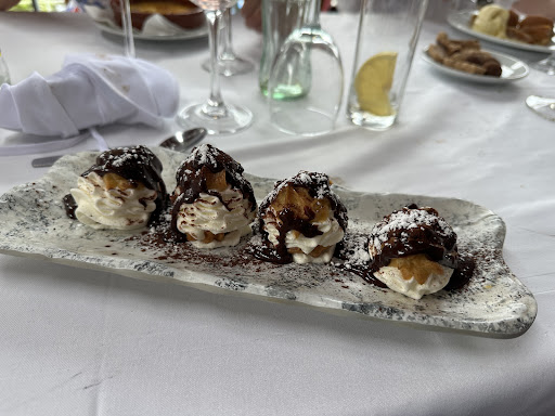 El responsable ha ofrecido a todas las mesas, tras haberse sentado en ellas de charloteo, un porrón de moscatel y su respectivo postre (a cargo de la casa) y los comensales de segunda (nosotros) como si solo les importara el dinero.