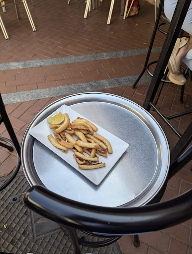 Read moreHemos venido a este sitio por la puntuación y las reseñas y ha sido toda una decepción. Pese a que había servicio de terraza nos ha tocado entrar a pedir a la barra, tras tener que coger la carta nosotros mismos. (El chico de la barra muy majo y eficiente por cierto) La comida escasa y bastante mediocre para el precio que tiene. Nos han cobrado hasta el pan y unos torreznos, que nos han puesto 6 contados (éramos 4). Por no hablar de que han tardado bastante en servir varios platos o traer la segunda ronda de bebidas o pan. Entiendemos que había gente y estar cara al público con 30 grados no es ideal, pero hacer sentir a los clientes que molestan o no son bien recibidos cuando tienes esos precios, no es para nada aceptable. Ha venido bastante gente mientras estábamos esperando y no entendemos cómo este sitio tan normal y con un trato tan seco, pobre y hasta maleducado, tiene éxito. (No pensábamos que necesitaríamos fotos del sitio, por lo que hemos hecho las fotos ya a...